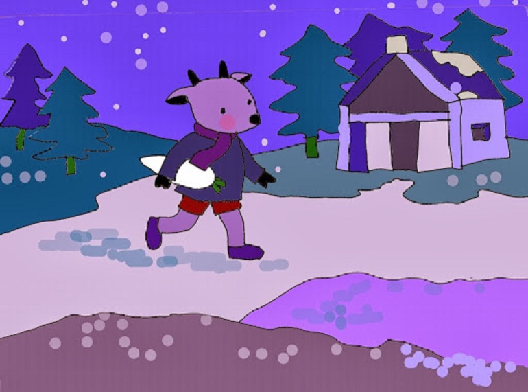 – Ừm… trời lạnh thế này, chắc Dê con cũng không có cái gì để ăn đâu. Mình phải mang cho Dê con một củ mới được.