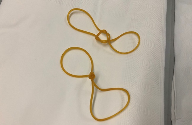 4 sợi thun được thắt lại thành 2 sợi