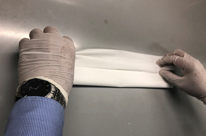 Sau đó trải rộng mặt khăn giấy ra theo chiều dài