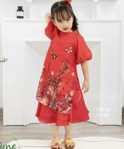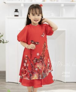 | Tên Sản Phẩm | Áo dài đỏ cách tân bé gái họa tiết hoa hàng cao cấp CT26 | |