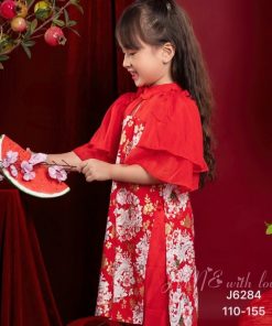 Áo dài đỏ cách tân bé gái họa tiết nhí hàng cao cấp chính hãng CT27