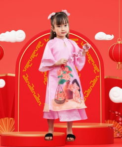 | Tên Sản Phẩm | Áo dài hồng cách tân bé gái họa tiết cô tấm hàng cao cấp CT34 | |