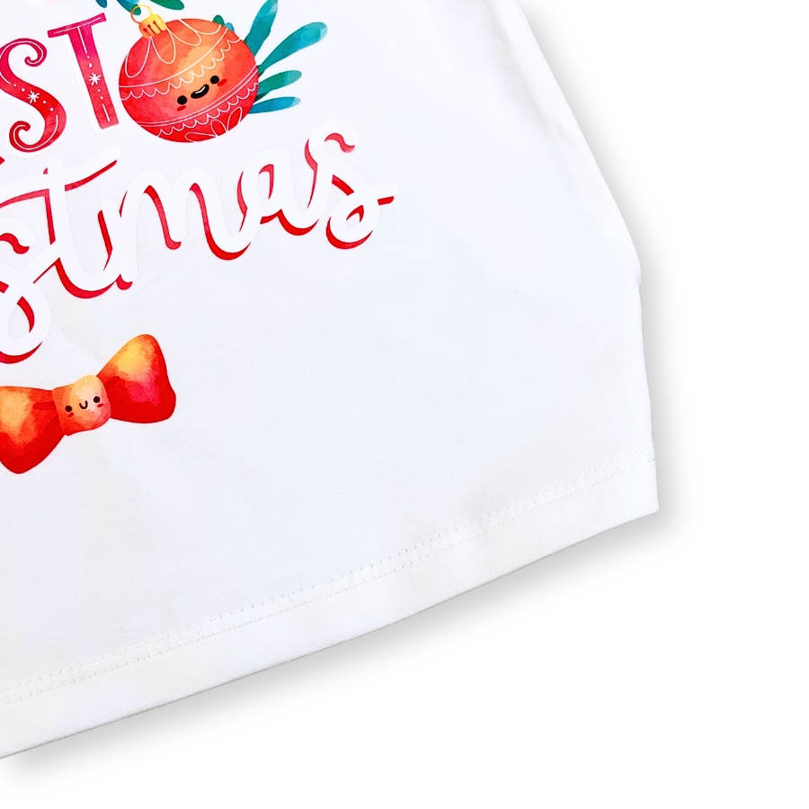 Áo giáng sinh trắng cho bé form unisex, hình cây thông & đèn noel AT52_F