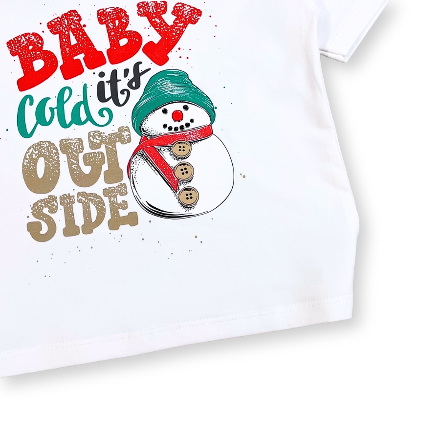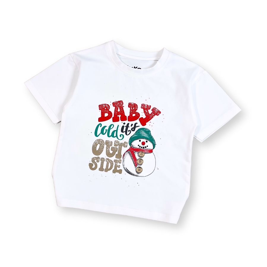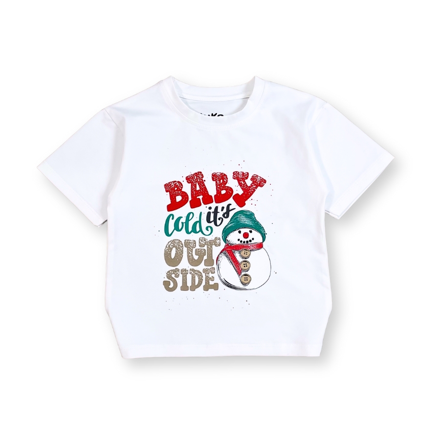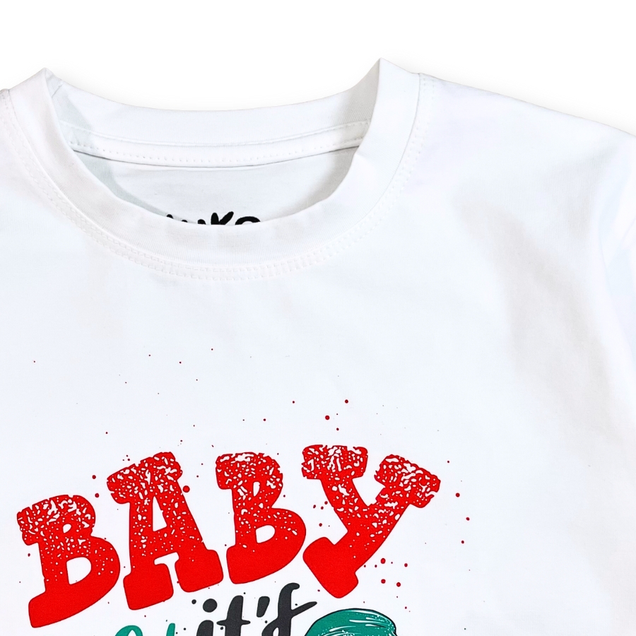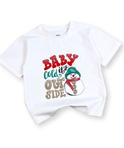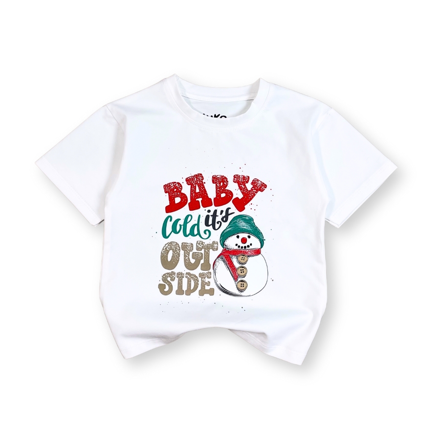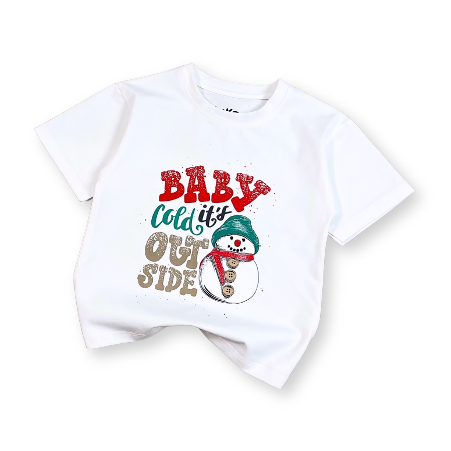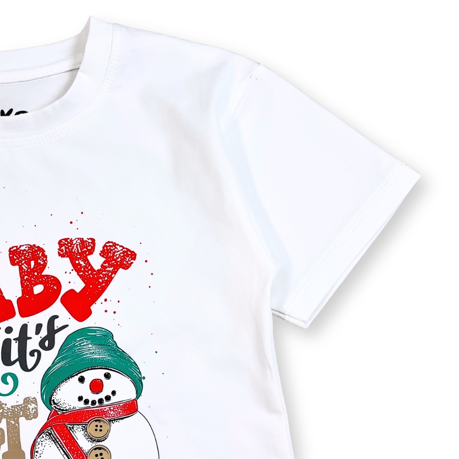Áo thun trắng Noel AT52_E thiết kế unisex cho bé trai & bé gái, họa tiết người tuyết – cây thông nổi bật mang không khí Giáng Sinh vui tươi. Chất liệu cotton mềm mịn, thấm hút tốt, bé mặc thoải mái không bí da, phù hợp đi chơi – chụp hình Noel – dự tiệc cuối năm. Form suông basic dễ phối cùng quần jeans, váy, yếm,… giúp bé có outfit đẹp mắt và đáng yêu.