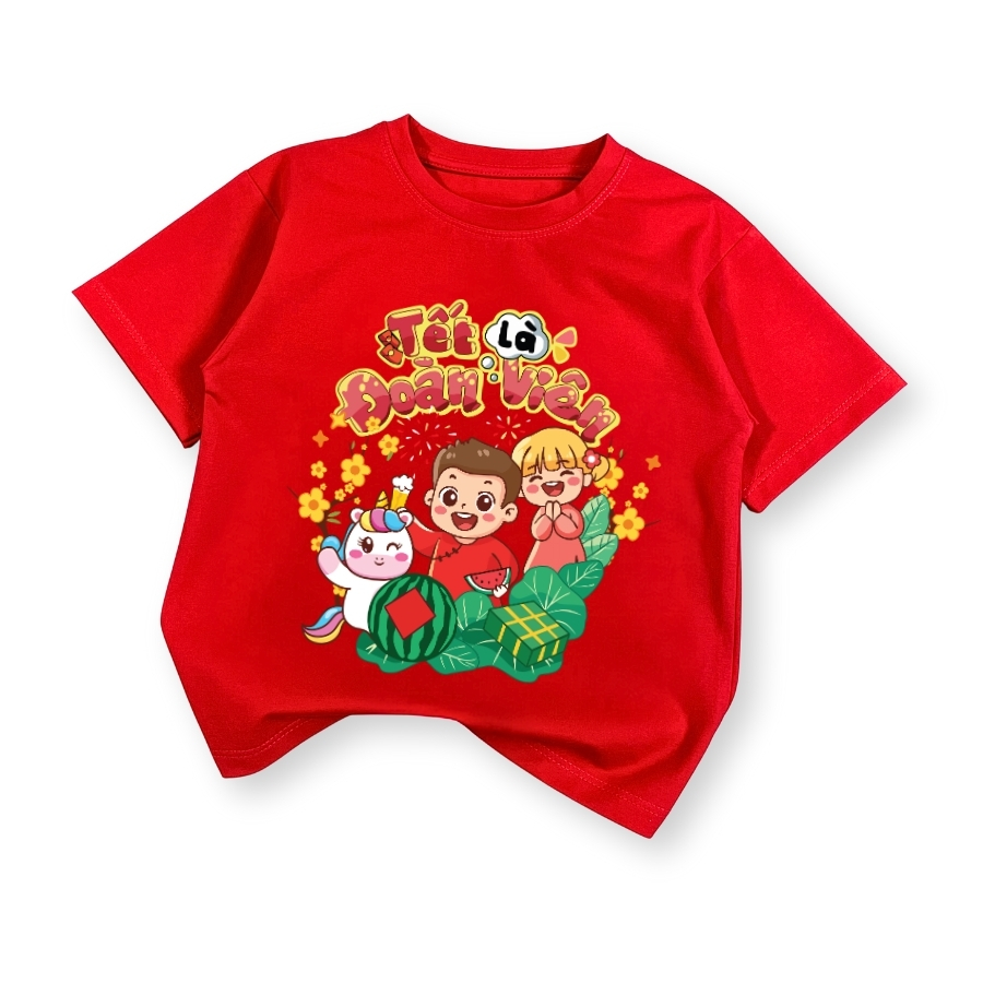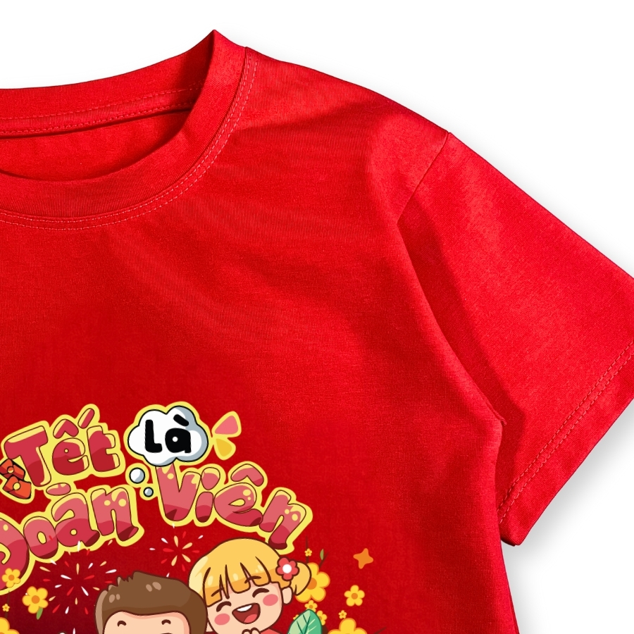 Áo thun Tết AT54_C màu đỏ nổi bật với họa tiết “Tết là đoàn viên” mang ý nghĩa sum vầy gia đình. Chất thun cotton mềm mát co giãn tốt giúp bé mặc thoải mái cả ngày dài. Hình in sắc nét bền đẹp không bong tróc khi giặt. Form áo unisex phù hợp cho cả bé trai và bé gái. Thích hợp mặc du xuân, chúc Tết và chụp ảnh ngày Tết.