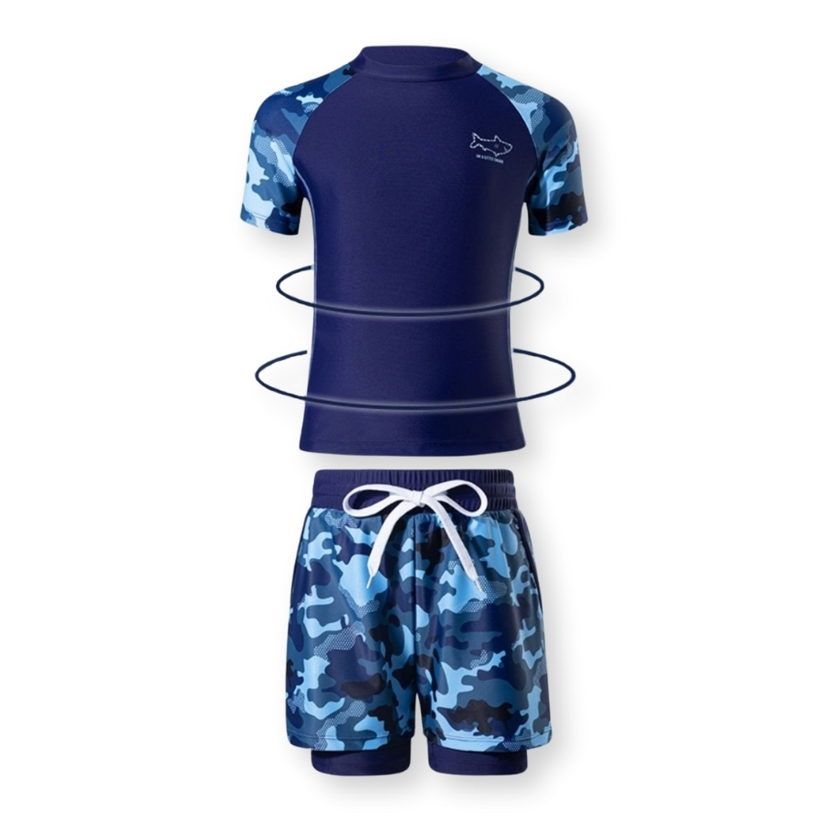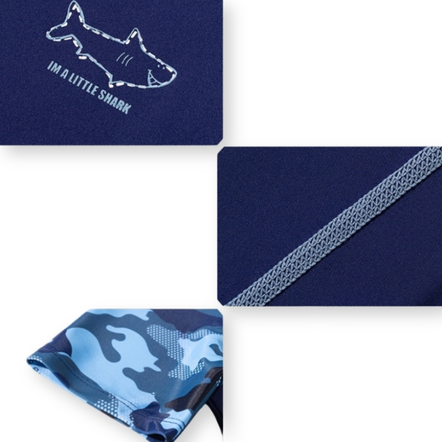 Đồ bơi bé trai cao cấp ngắn tay – Họa tiết cá mập camouflage – BN187