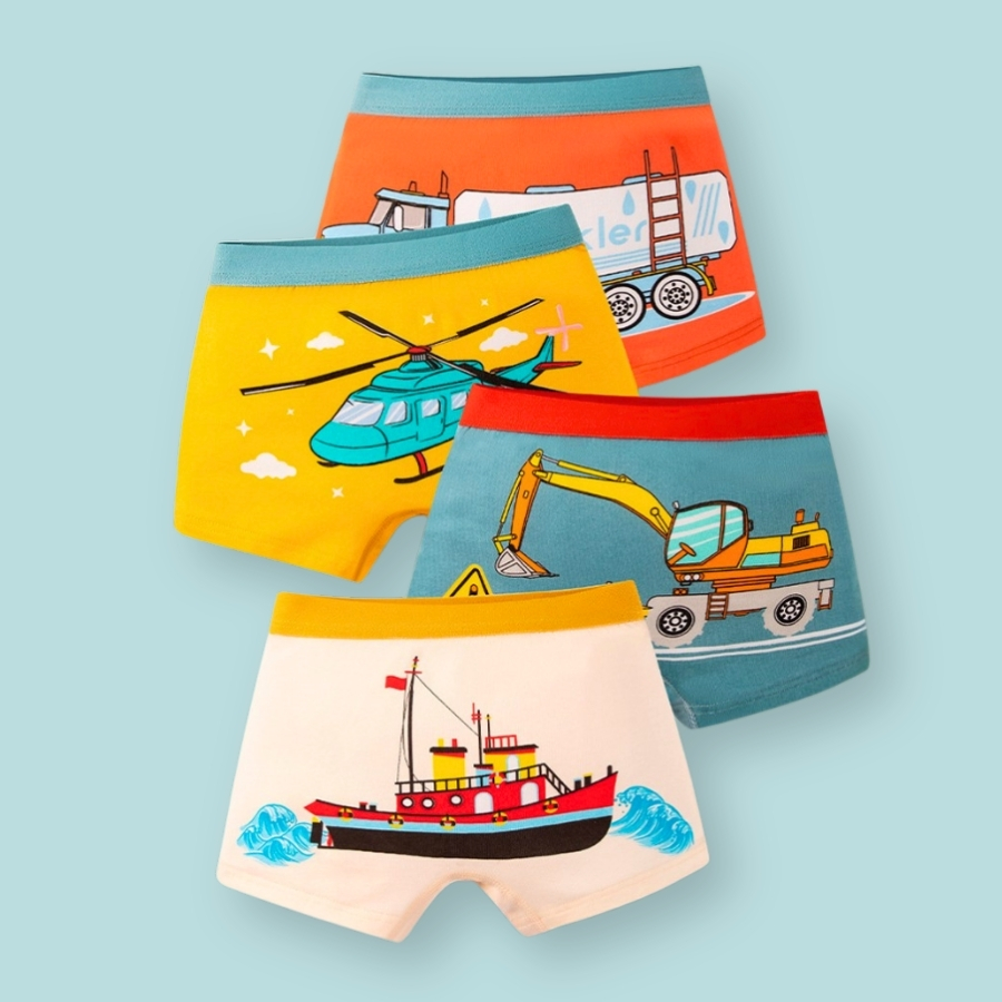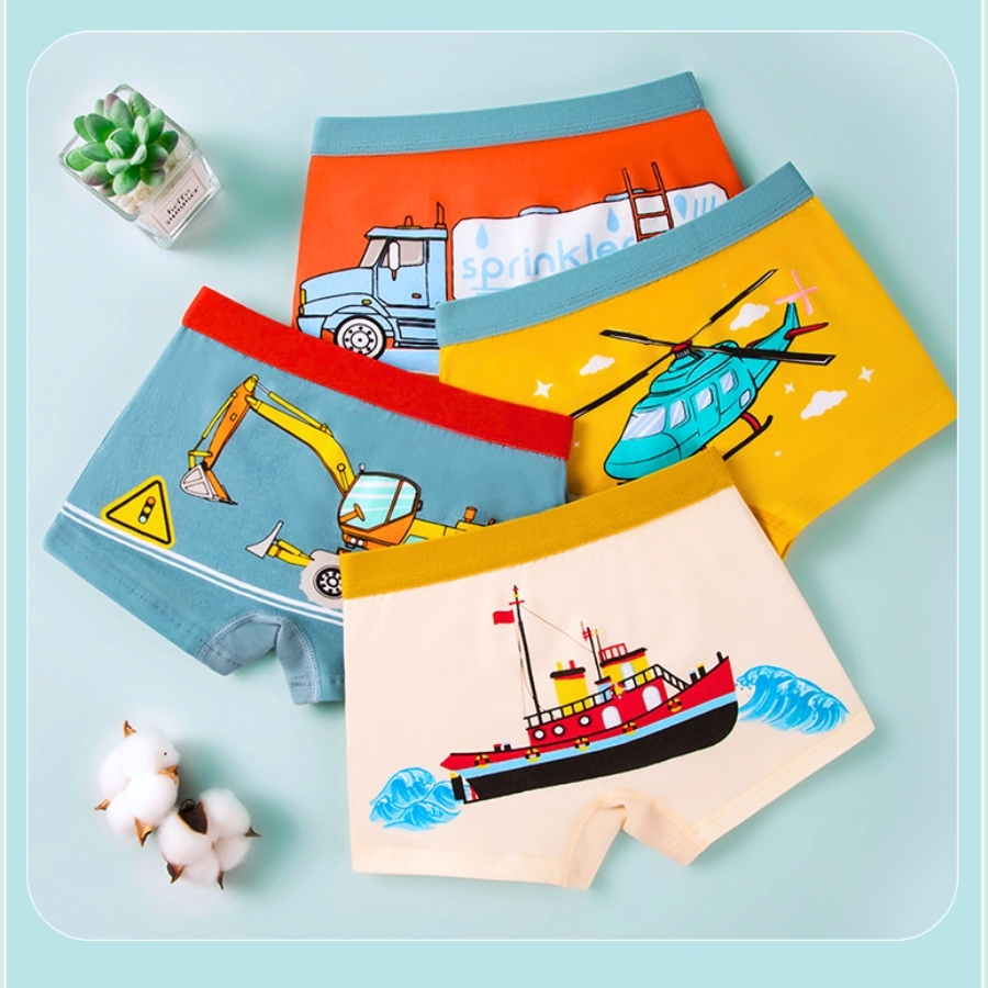 Combo gồm 4 quần chip đùi với họa tiết xe khác nhau, đóng gói gọn gàng, tiện lợi thay đổi mỗi ngày. Phù hợp mua dùng lâu dài hoặc làm quà cho bé trai đều rất xinh và thực tế.