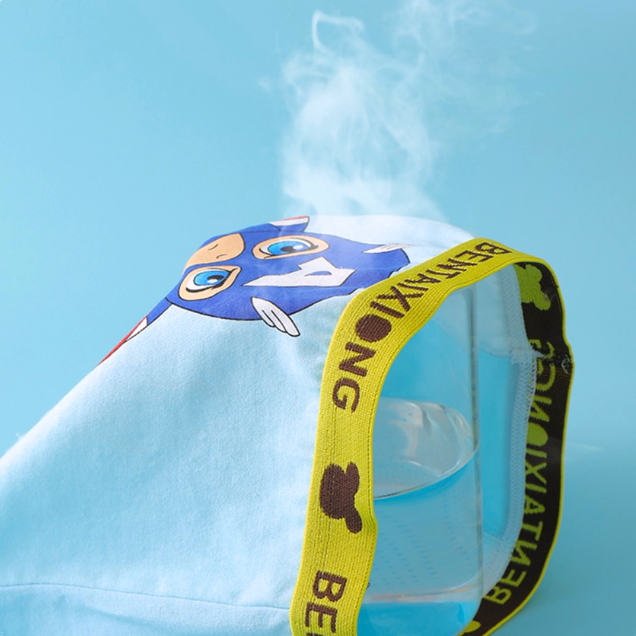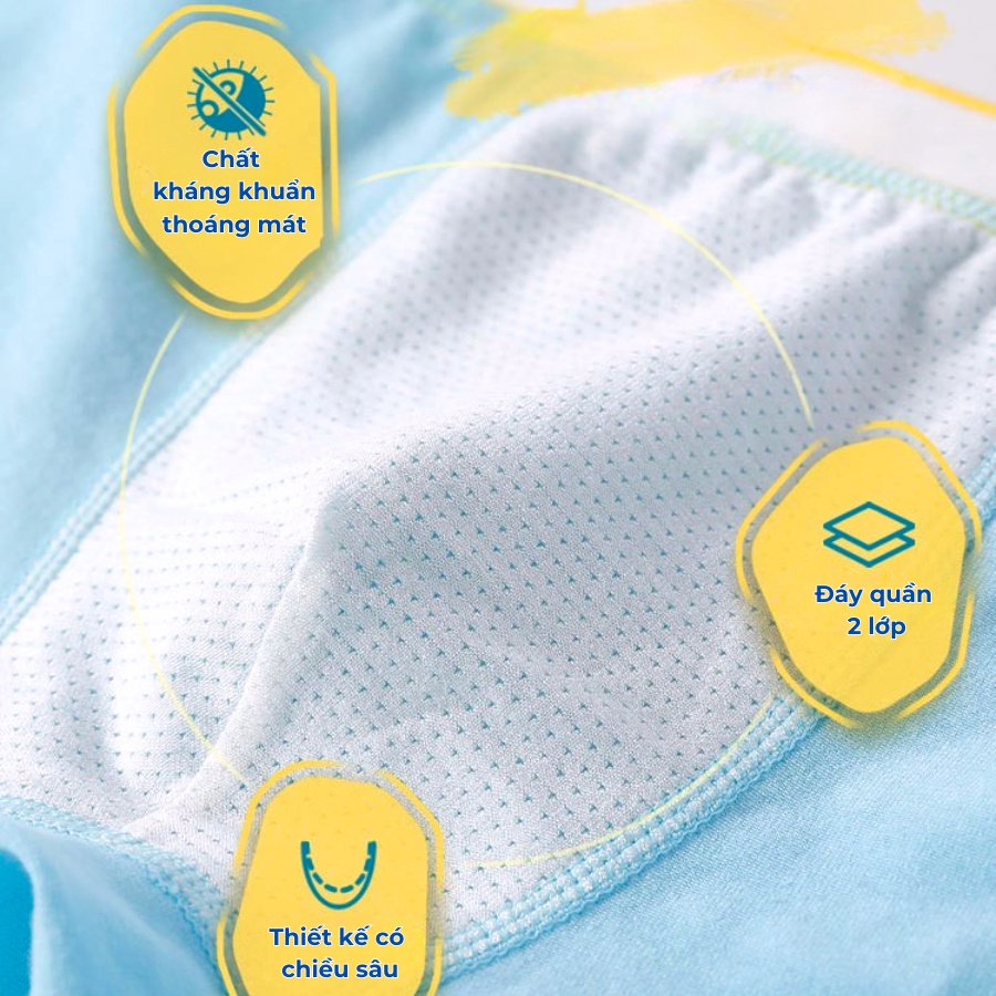 Thiết kế dạng quần chip đùi ôm nhẹ tạo cảm giác vừa vặn thoải mái, giúp bé vận động, chạy nhảy mà không bị tuột hoặc cấn; phần bo thun bản to đàn hồi tốt, không siết bụng, tạo cảm giác dễ chịu khi mặc lâu; họa tiết siêu anh hùng phiên bản chibi được in ở mặt sau tạo điểm nhấn dễ thương, bé trai nào cũng thích; màu sắc tươi sáng đa dạng, bé thay đổi mỗi ngày không bị nhàm chán; form quần phù hợp mặc bên trong quần dài, quần short mà không bị cộm.