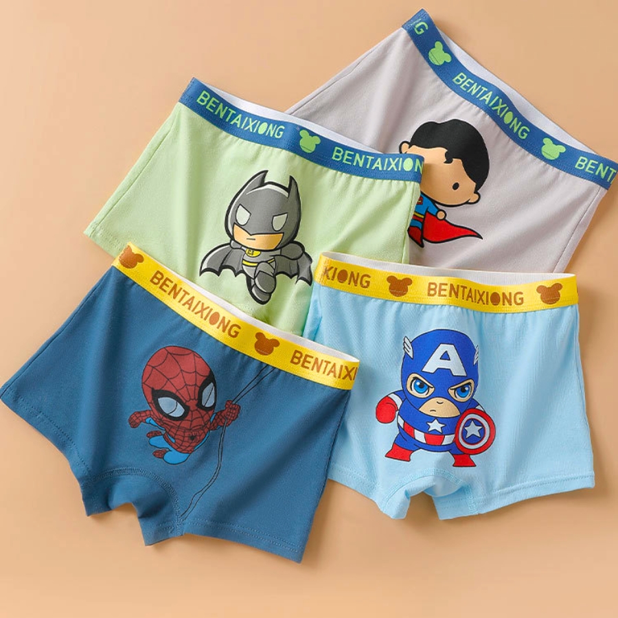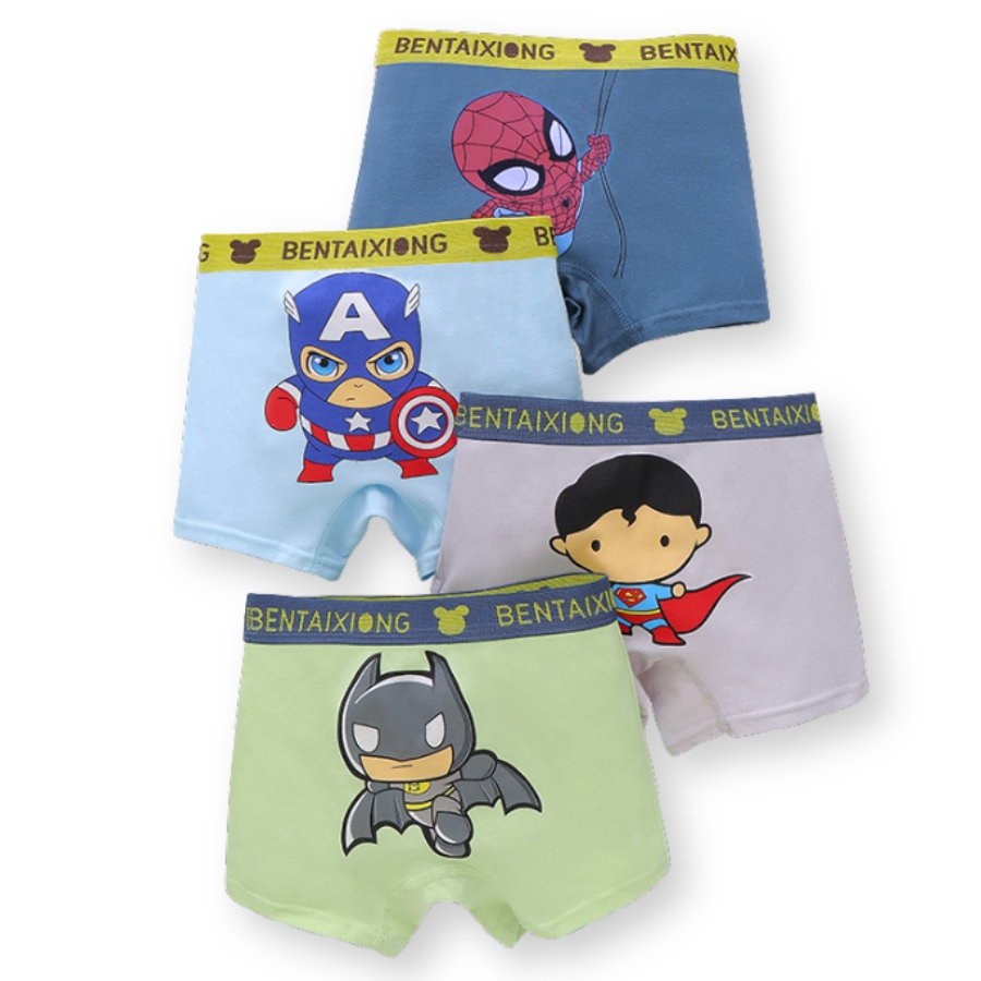 Combo 4 quần lót đùi bé trai cotton mềm, co giãn 4 chiều, họa tiết siêu nhân QS09