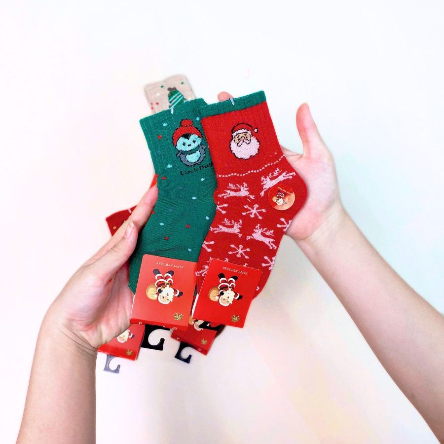 | Kiểu dáng | Vớ cổ cao giữ ấm, hoạ tiết Giáng Sinh dễ thương | |