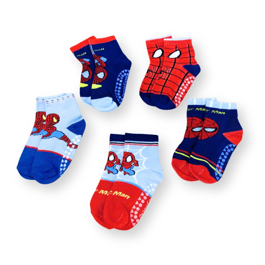 Set 5 đôi tất siêu nhân người nhện cho bé trai vớ cổ ngắn chống trượt PK54_A