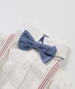 Set bộ yếm công tử bé trai body sơ mi trắng chất đũi kèm quần xanh SE164 được thiết kế theo lịch lãm mà không kém phần sang trọng, gồm body chất đũi mềm sơ mi trắng và quần xanh, tặng kèm nơ và đai chuẩn xịn. Set bộ trang phục này rất phù hợp cho bé mặc trong các dip sinh nhật lễ tết, chụp ảnh