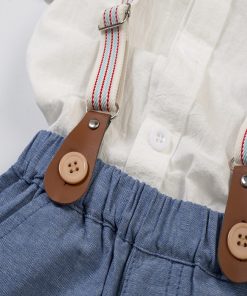 Set bộ yếm công tử bé trai body sơ mi trắng chất đũi kèm quần xanh SE164
