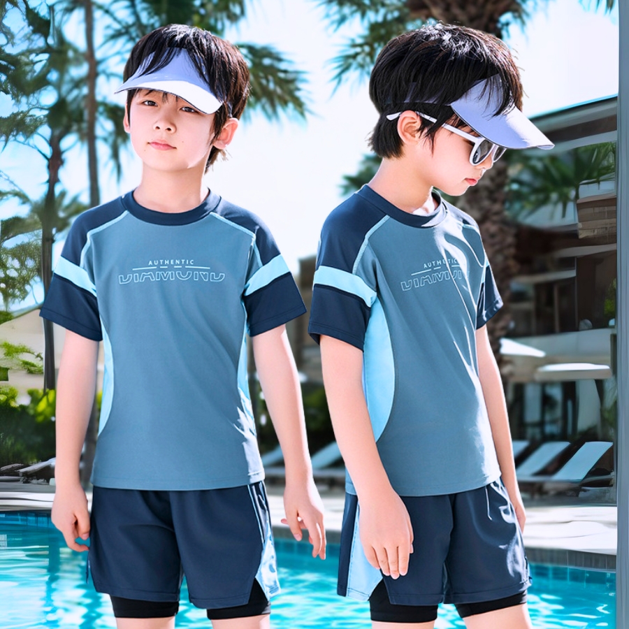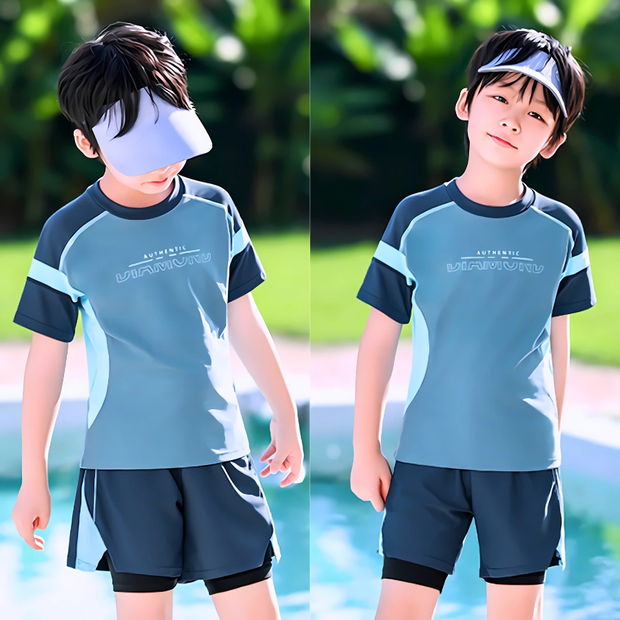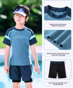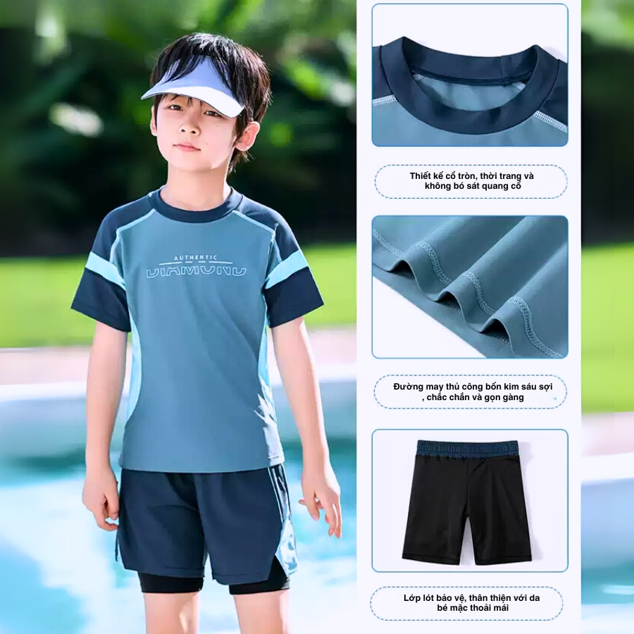 Đồ bơi bé trai cao cấp tay ngắn quần đùi – BN201 – Mát mẻ, thoải mái, form chuẩn cho bé 15–50kg