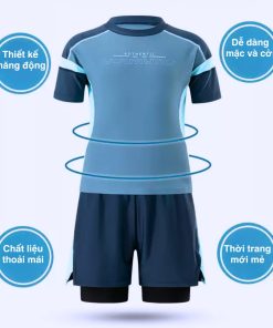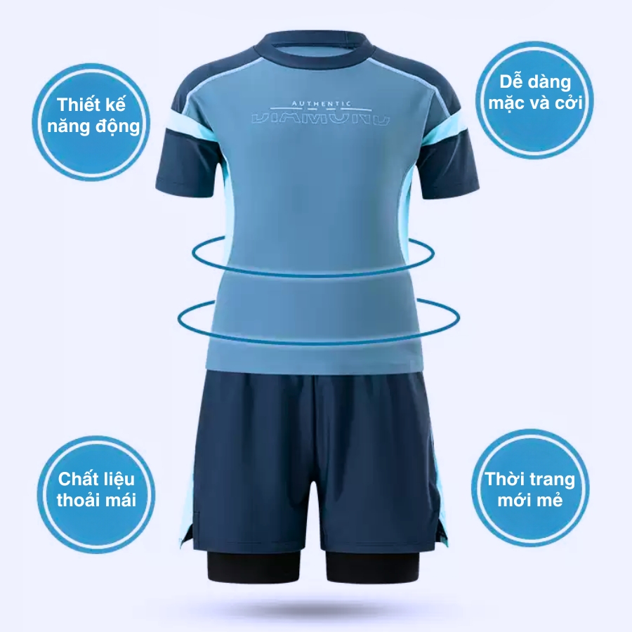 | Kiểu dáng | Áo tay ngắn cổ tròn rộng – quần đùi 2 lớp (ôm nhẹ – kín đáo – dễ vận động) | |