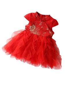 | Tên Sản Phẩm | Váy bé gái mặc tết vải ren đỏ phối voan mềm cao cấp SE179 | |