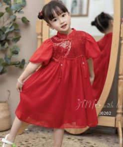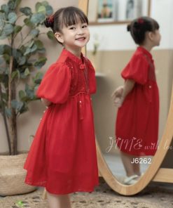 Váy sườn sám đỏ cho bé gái cổ tàu cách điệu hàng cao cấp SE174