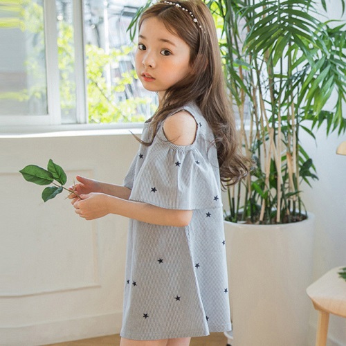 Mẫu váy bé gái đẹp, xinh xắn khi có những ngôi sao lấp lánh trên nền váy sọc đứng (Hình ảnh minh họa)
