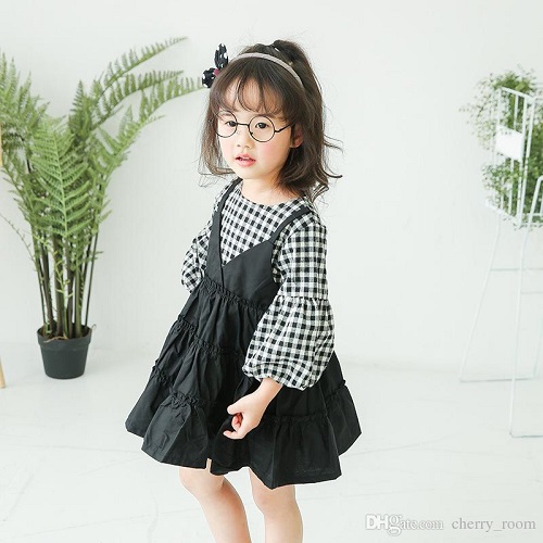 Kẻ sọc caro xuất hiện trên váy bé gái, chân váy,… và đương nhiên, trên những chiếc áo kiể cách. Kết hợp cùng đầm 2 dây màu đen xinh xắn cho bé sự kết hợp thời trang (Hình ảnh minh họa)