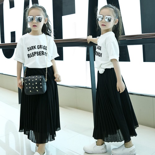 Áo phông kết hợp với chân váy maxi dài tận gối tạo nên phong cách thời trang thanh lịch hơn cho bé (Hình ảnh minh họa)