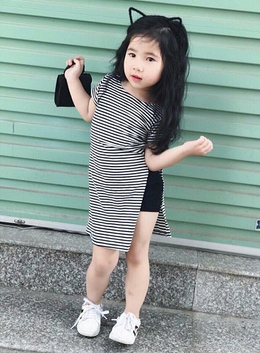 Váy bé gái 12 tuổi với sọc ngang cá tính cho bé yêu của bạn